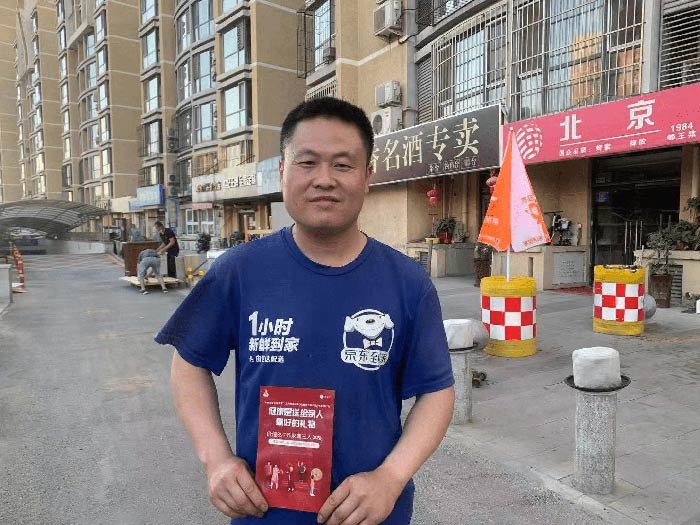 丰全明拿到了达达快送平台赠送的健康卡和心愿礼金很开心