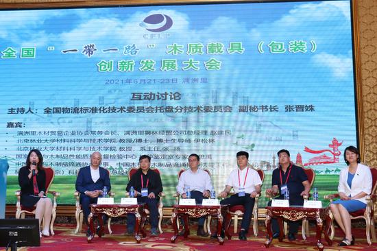 在全国物流标准化技术委员会托盘分技术委员会副秘书长张晋姝的主持下,大会邀请了满洲里木材贸易企业协会常务会长、满洲里狮林经贸公司总经理赵建民、北京林业大学材料科学与技术学院教授/博士,博士生导师伊松林、北京林业大学材料科学与技术学院教授,系主任张扬、国家木材与木制品性能质量监督检验中心树种鉴定室专家陈思禹、中国木材与木制品流通协会理事、中国木材与木制品流通协会法律工作委员会秘书长李建新和林扬东方(北京)科技有限公司总经理李晓娟,结合当前行业形式,重点围绕木质包装行业新技术、新发展、创新应用与人才培养、法律法规等话题进行了深入的交流与讨论。