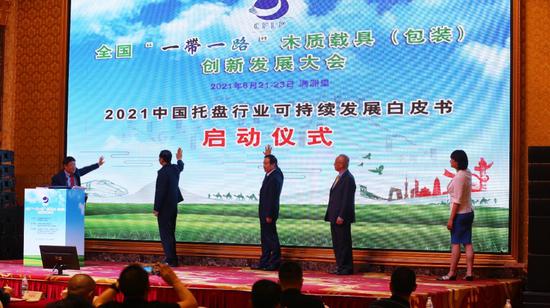 为推广可持续循环包装,构建托盘标准化体系,促进托盘共享共用,持续增加托盘中可持续绿色原料的使用,利用新材料、新技术开发废弃物再生制造托盘,力争与供应商共同发展,搭建绿色供应链,中国物流与采购联合会托盘专业委员会联合清华大学环境学院·循环经济产业研究中心和林扬东方(北京)科技有限公司共同发起“中国托盘可持续发展行动倡议”,编写出版《2021中国托盘行业可持续发展白皮书》。满洲里市边境经济合作区管委会主任曹力,中国物流与采购联合会会长助理、托盘委主任马增荣,中国木材与木制品流通协会会长李佳峰,中国物流与采购联合会托盘专业委员会秘书长孙熙军和林扬东方(北京)科技有限公司总经理李晓娟共同上台开启启动仪式。