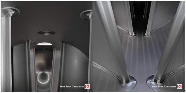 集装罐供应商思多而特公司对其挡板罐进行了升级迭代,将原有的螺栓连接的水平挡板升级为焊接的垂直隔板。这一更新不仅增强了结构完整性,而且实现了无需拆卸就可以完成手动清洗的功能,更加高效便捷。同时,新升级的设备配备12段加热盘管,可进行有效加热,且获得了ADR集装罐认证 (a.o. L4BN),可用于铁路、远洋、货车和驳船运输。